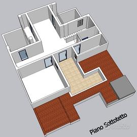 - Piano terzo/sottotetto: si ha accesso diretto ad un grande ufficio di circa 34 mq , ed un wc per circa 3 mq, inoltre è dotato di due locali sottotetto adibiti a deposito/archivio, ed accessoriato da terrazzo (17 mq.) e verande esterne (mq. 7+4);