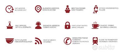 Il canone include internet fibra, linee telefoniche con traffico nazionale flat, cablaggio strutturato, pulizia spazi comuni, portierato, allarme, vigilanza, cctv, piazzali esterni, parcheggi, manutenzioni ordinarie, reception, gestione e ricezione corrispondenza e corrieri.