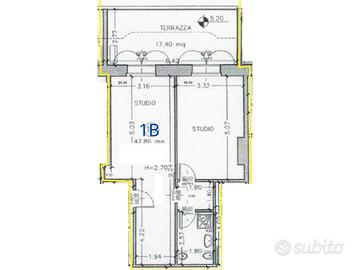 È composto da ingresso su ampia sala, disimpegno, ulteriore stanza e un bagno. I due ambienti si affacciano su una terrazza a livello di pertinenza.