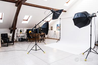Noleggio studio fotografico. Il nostro studio fotografico in affitto di circa 120 mq è la location ideale per servizi fotografici e riprese video, anche in daylight. Possibilità di noleggio a ore, mezza giornata o giornata intera sia per fotografi professionisti che per amatori. Disponibile anche nel weekend. Attrezzatura e fondale bianco o nero inclusi.