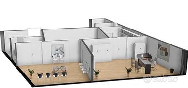 Completa l'immobile una zona archivio e un secondo bagno riservato al personale, in comune con entrambi gli studi, con accesso diretto all'interno degli uffici stessi.