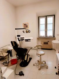 Inserito al pianterreno di fabbricato di pregio noto come Villa Fontana ed ubicato nel centro di Montanaro (TO), lo studio si compone di cinque ampi locali attualmente adibiti a studio dentistico, raccordati da una generosa e luminosa sala d'attesa con area ricezione. Uno dei locali è predisposto con allestimento per radiografie.