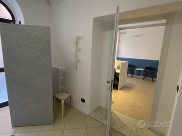 Lo studio è servito di sala d'attesa con bancone reception, dispenser di acqua e bagno per disabili. Formula all-Inclusive, canone tutto incluso: pulizie e sanificazione giornaliere, utenze, Wi-Fi, materiali consumabili. Possibilità di apporre il proprio nominativo internamente alla reception.