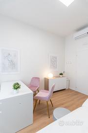 Tutti i nostri studi sono arredati e corredati di lettino elettrico per terapie manuali, scrivania con poltrona, mobili e ripiani, illuminazione dimerabile, e vengono fornite "chiavi in mano" comprese di utenze, Wi-Fi e servizio di pulizie, senza costi di avviamento, a singola giornata o in abbonamento.
