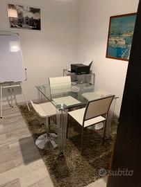 Ampio ed elegante Ufficio con 2 postazioni attrezzate, ognuna con scrivania, libreria e sedie, climatizzato ed estremamente luminoso. l'ufficio si trova all'interno di uno studio professionale con un altro ambiente dedicato ad attività di Ingegneria. Completano lo studio professionale un ingresso con reception e sala d'attesa, Un servizio igienico ed un piccolo punto ristoro. La locazione mensile comprende anche i costi di condominio, l'utilizzo gratuito della Wi fi ed i costi dell' utenza idrica