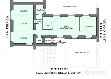 Al primo piano di edificio storico, disponibile ampio studio-ufficio di oltre 100 mq in posizione esclusiva con: