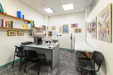 Ubicato al piano terra si sviluppa su un unico livello ed è costituito da 7 stanze un tempo usate come studi medici più la grande sala reception, 2 wc e uno spogliatoio.