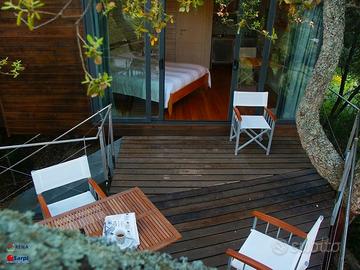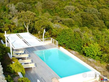 In località San Biagio, immersa nella splendida campagna Gallurese, proponiamo in vendita un'incantevole tenuta che si estende su una superficie totale di 530 mq ed è circondata da circa 80.000 mq di terreno. La proprietà comprende sei alloggi indipendenti e tre accoglienti bungalow, per un totale di 9 camere da letto con bagno privato capaci di ospitare fino a 18 adulti e 9 bambini oltre ad un locale attualmente adibito ad uso ristorante con 2 bagni e zona ristoro e una comoda cantina con locale attrezzi. Ogni ambiente, dal design raffinato e curato nei minimi dettagli è stato concepito per armonizzare privacy e socialità a contatto con la natura. La proprietà è dotata dei più moderni comfort tra cui colonnine per la ricarica di veicoli elettrici, pannelli fotovoltaici, pozzi attivi, una vasca per la riserva idrica e una fossa IMOF conforme alle normative vigenti.
