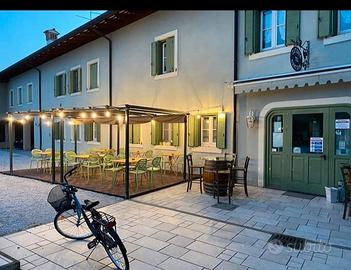 OTTIMO Locale commerciale (compreso di muri) già adibito ad attività di bar e ristorazione, in contesto storico recentemente e finemente ristrutturato posizionato all'interno di un'ampia e curata corte che garantisce tranquillità e una bella vista aperta sul verde. Il locale di oltre 250 mq è dotato di una zona bar con bancone, una grande cucina professionale dotata di dispensa, entrambi completamente attrezzati, un'ampia sala interna di ben 130 mq già arredata, ideale per ospitare clienti (80) nel massimo comfort e riservatezza, completo di servizi igienici separati per clientela e personale. La corte esterna di proprietà offre la possibilità di creare un'atmosfera unica e rilassante per godersi aperitivi e pasti all'aperto. In classe energetica B, garantisce dei consumi e costi di gestione ridotti. Il locale è perfetto per chi desidera intraprendere una nuova avventura nel mondo della ristorazione! 300000? trattabili possibile affitto aziendale.