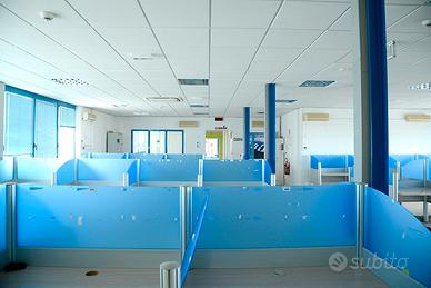 Al piano terra si trovano spazi adibiti a reception, sale riunioni, uffici e aree relax, oltre a locali tecnici come un server e un deposito. I piani superiori offrono ampie zone open space, uffici privati, aule per la formazione e spazi per archiviazione, tutti dotati di servizi igienici ben distribuiti su ogni livello.