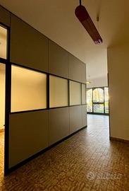 ufficio lato ovest. Per le loro caratteristiche, gli uffici garantiscono funzionalità e adattabilità alle potenziali molteplici attività, da inserire nel contesto. Grazie alle spesse vetrate, alle massicce porte d'ingresso ed alle ampie finestre con tapparelle avvolgibili in alluminio coibentato, gli uffici si presentano molto luminosi, con criteri di sicurezza elevati. Ogni apertura esterna al piano terra, sono dotate di inferriate in ferro. Entrambi i bagni sono di recente ristrutturazione, molto ampi e confortevoli, tutti con finestre. Riscaldamento autonomo