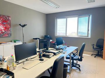 Il comodo disimpegno d'ingresso con adiacente bagno idoneo anche per individui con disabilità motorie, oltre la funzionale sala a seguito, risulteranno ideali per realizzare una pratica ed accogliente postazione di segreteria e di prima accoglienza dei clienti che ben disimpegna le ulteriori due sale. Quest'ultime, entrambe finestrate su uno splendido panorama vista mare, offrono una metratura di circa 25 mq l'una, prestandosi perfettamente ad essere adibita come ufficio personale per lo svolgimento del lavoro interno o per il ricevimento della clientela, e di circa 20 mq l'altra, che potrà essere utilizzata invece come unico ambiente o destinata ad uso archivio/deposito.
