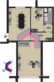 Composto da: 3 stanze di cui una più piccola, servizio, disimpegno.