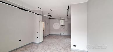 L'ufficio misura 70 metri quadrati ed è situato al piano terra di una palazzina condominiale che si sviluppa su due livelli. Al piano terra la soluzione è così composta con un open space e dotata di un servizio igienico. L'ambiente è particolarmente luminoso grazie alla presenza di una grande vetrina posta all'ingresso della struttura.
