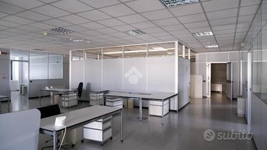 La soluzione ha una superficie che misura complessivamente circa 420 metri quadrati ed è disposta al piano primo di una struttura sviluppata su due livelli. L'ufficio è attualmente diviso in tredici locali ed è dotato di due servizi igienici. L'immobile presenta l'impianto di riscaldamento e condizionamento ad aria, l'impianto elettrico e quello di illuminazione. La struttura è controsoffittata ed è dotata inoltre dell'impianto antincendio.