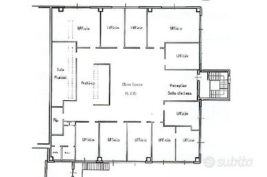 Proponiamo esclusivamente in locazione un ufficio che dispone di una superficie di circa 420 metri quadrati, situato al piano primo di una struttura che si sviluppa su due livelli.