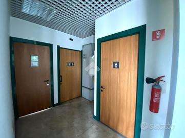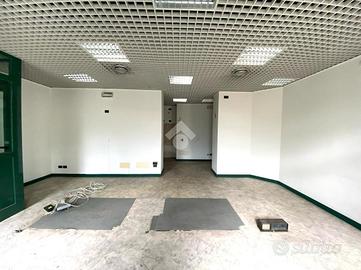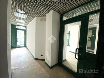 L'immobile dispone di ingresso indipendente dalla via principale, con affaccio diretto su strada e ampie vetrine che assicurano grande visibilità. Internamente si compone di un ampio ambiente open space, uffici privati, servizi igienici uomo/donna separati, un ripostiglio o secondo ufficio con bagno privato sul retro e due posti auto interni ad uso esclusivo. L'accesso è completamente privo di barriere architettoniche.