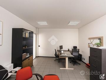 Internamente è disposto su un unico livello con un ingresso su una sala d'attesa, due locali studio ed un servizio igienico con antibagno. L'ufficio è cablato ed e dotato di pavimento flottante che consente la sopraelevazione del piano di calpestio creando un facile passaggio degli impianti tecnici.