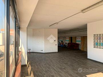 L'ufficio misura circa 150 metri quadrati attualmente si sviluppa in un unico locale ed è dotato di due servizi igienici. Il locale presenta gli impianti elettrici e di illuminazione, l'impianto di riscaldamento. La struttura ha un'altezza di 2,7 metri e ha una pavimentazione in laminato.