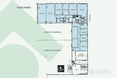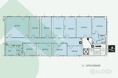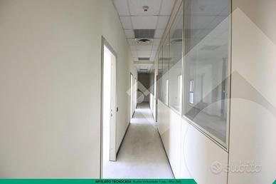 Gli UFFICI hanno una superficie totale di 900 mq e si sviluppano su due livelli, piano primo e piano secondo, inoltre al piano terra è presente invece una reception molto ampia con un ascensore per accedere ai vari piani. Le divisioni interne sono in muratura e pareti attrezzate. Servizi igienici su ogni piano. Pavimenti flottanti. Dotati di tutti i principali IMPIANTI: illuminazione, elettrico, riscaldamento autonomo a gas, aria condizionata autonoma, rete dati per computer.