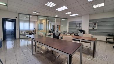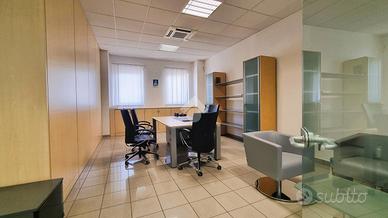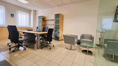 All'interno, l'ufficio si distingue per un ampio salone centrale, ideale per accogliere clienti o organizzare riunioni. Completano la struttura due uffici separati, perfetti per chi necessita di spazi riservati per il lavoro individuale o incontri confidenziali. Dotato di servizi igienici.
