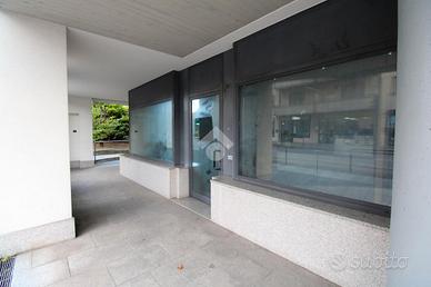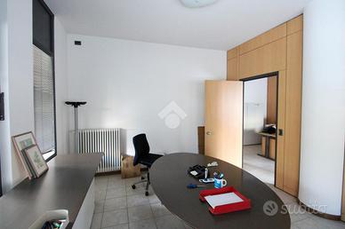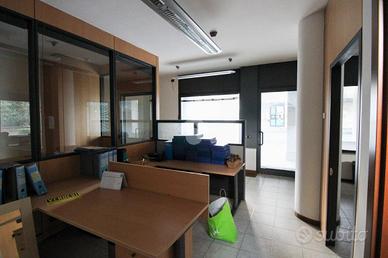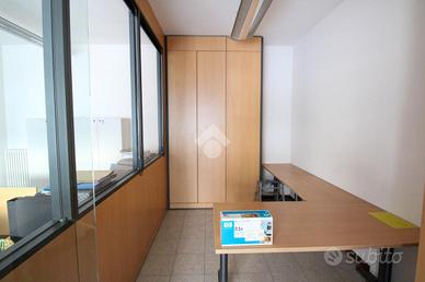 La soluzione misura complessivamente circa 60 metri quadrati. Il complesso è attualmente diviso in due locali ed è dotato di un servizio igienico privato. L'ufficio è servito da impianto di riscaldamento, impianto elettrico e quello di illuminazione. La struttura è munita di connessione ad Internet. L'immobile si trova al piano terra di una palazzina che si sviluppa su cinque livelli. Al piano seminterrato sono presenti ulteriori 60 metri quadrati di magazzino e 50 metri quadri adibiti ad autorimessa.