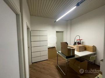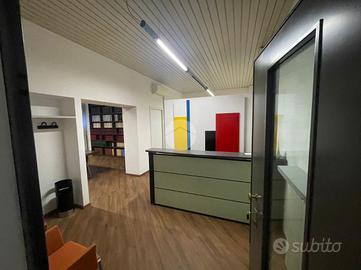 L'immobile è completo di un angolo reception, sala riunioni/meeting, servizi igienici, antibagno, impianto con pompa di calore sia per quanto riguarda il riscaldamento che per raffrescamento.