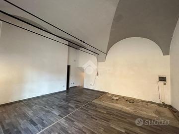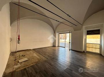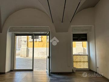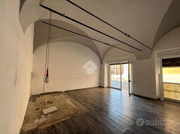 La soluzione è composta da due locali: il primo affaccia direttamente sulla piazza mentre il secondo, posizionato ad un livello leggermente più basso e accessibile tramite scala, affaccia sul vicolo adiacente.