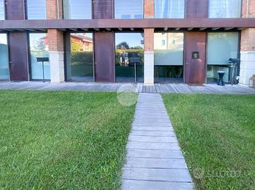 Completa la soluzione un giardino condominiale antistante e n. 2 posti auto esclusivi di cui uno esterno posto di fronte all'immobile e uno interno di circa 10 mq collegato direttamente all'immobile.