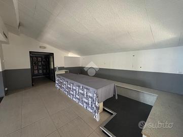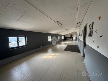L'ingresso è dalla scala comune che porta direttamente nell'ampio locale open space che collega poi cinque ulteriori locali e quattro servizi igienici.