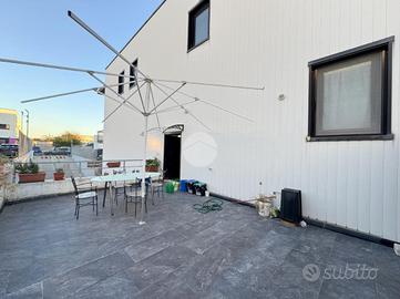 I due piani sono collegati internamente tramite una scala, per accedere direttamente al piano seminterrato con i veicoli si utilizza lo scivolo di proprietà esclusiva dell'immobile, con cancello elettrificato, posto sul lato rispetto alla strada di accesso.