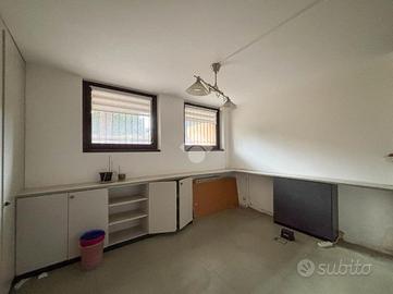 Ufficio di circa 200 metri quadrati, di cui 120 metri quadrati di ufficio, 65 metri quadrati di magazzino e 15 metri quadrati di box, in buone condizioni - Disposto al piano seminterrato di un edificio raggiungibile tramite scala - Un servizio igienico (non a norma disabili) - 1 box di circa 15 metri quadrati - IMPIANTI E DOTAZIONI: impianto di riscaldamento, elettrico e di illuminazione, impianto di allarme, anello antincendio condominiale, pavimento flottante, doppio ingresso e controllo accessi