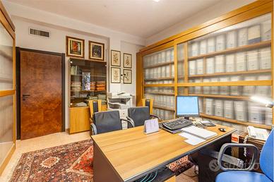 Il cuore dell'ufficio si sviluppa in due ampi vani operativi di cui uno vanta di accesso diretto, tramite una luminosa portafinestra, a un profondo balcone che si affaccia sulla via principale, offrendo uno sfogo esterno raro e prezioso in contesti d'ufficio. La proprietà è completata da un funzionale ambiente dedicato ad archivio e da un bagno.