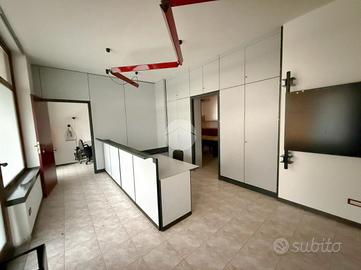L'ufficio misura circa 65 metri quadrati e si trova al piano terra di una struttura a destinazione mista. La struttura è attualmente divisa in tre stanze ed è dotata di un servizio igienico. La soluzione, è servita dall'impianto di riscaldamento e condizionamento, dall'impianto elettrico e quello di illuminazione. Inoltre, all'esterno dell'immobile sono presenti circa 30 posti auto usufruibili dalla clientela. L'ambiente risulta ben illuminato grazie alla presenza di due ampie finestre.