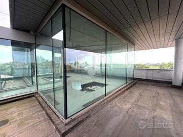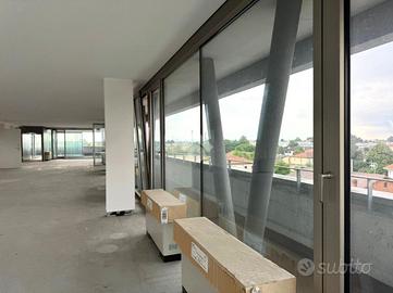 LOCALITA': CAMPODARSEGO (PD) - COSA SAPERE SULL'IMMOBILE: proponiamo in VENDITA ufficio / attico su elegante e prestigiosa palazzina. PARTICOLARITA' e DESCRIZIONE: dotato di ascensore privato al piano, di dimensioni generose e completamente finestrato. Dotato di giardino zen e di terrazzi panoramici. L'ufficio, attualmente al grezzo avanzato, si propone come immobile duttile: può essere infatti frazionato e suddiviso in più unità, può diventare abitazione esclusiva e moderna. La luce lo pervade a tutte le ore del giorno, creando un'armonia eccezionale per una zona di relax unica per lavorare. UBICAZIONE e CONTESTO: in zona centrale, su palazzina direzionale.