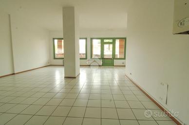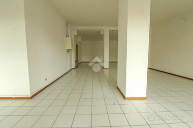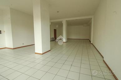 La soluzione ha una superficie che misura, nella sua totalità, circa 95 metri quadrati. L'ambiente interno è composto da un grande open space con due colonne portanti al centro ed è dotato di un servizio igienico privato. Il locale è particolarmente luminoso grazie alla presenza di un'ampia vetrina d'ingresso. L'immobile è completo degli impianti elettrico e di illuminazione e degli impianti di riscaldamento e condizionamento ad aria. La pavimentazione interna è stata realizzata rivestendo il fondo con mattonelle di colore chiaro. Possibilità di affitto a riscatto.