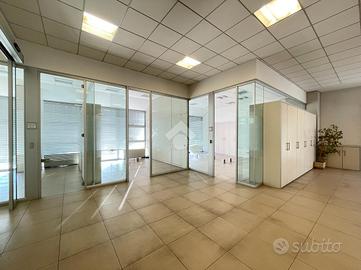 L'immobile è stato per anni sede di aziende nel mondo finanziario ed è immediatamente individuabile grazie all'estetica moderna e ricercata. Il piano terra si compone di due ali di 300 mq circa che sono state rese autonome e divise, disponendo già di due ingressi separati appena oltre l'ampia reception. La porzione che proponiamo in locazione misura 285 mq ed offre finiture e spazi moderni, open space, pareti vetrate e attrezzate, ed una ampia sala reception. L'immobile rappresenta la soluzione perfetta per aziende che necessitano di ambienti moderni, comodità ai servizi, ampio parcheggio e facile raggiungibilità, oltre ad una estetica di rappresentanza.