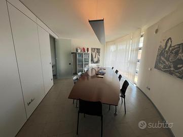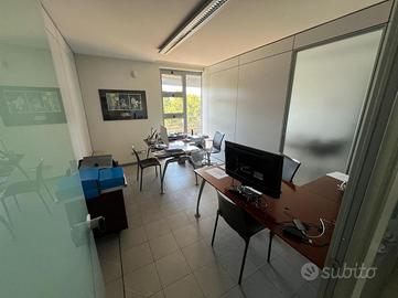 L'immobile risulta attualmente diviso in due locali separati, a destra un ufficio suddiviso con moderne pareti attrezzate creando tre uffici e una sala riunioni sul fondo, assieme ad un'area reception all'ingresso. A sinistra si trova un vano unico open space, che lo rende personalizzabile secondo le proprie esigenze. Tutti i vani godono di un'ottima illuminazione grazie alle vetrate laterali che corrono su tutto lo stabile. Gli spazi sono adatti per diverse attività che hanno bisogno di spazi di rappresentanza comodi sia al centro cittadino che al casello autostradale, che si trova a solo 3km dal complesso.