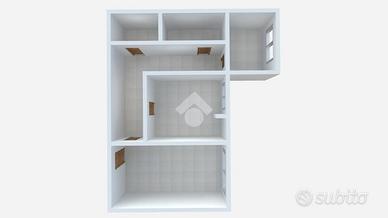 Completano la soluzione il ripostiglio di 1,50 mq ed i due bagni; di cui uno più grande con finestra di circa 4 mq e il secondo di servizio di 3 mq.