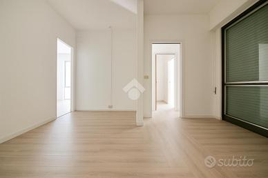 Proponiamo in locazione un ufficio di 106 mq dotato di doppio ingresso, situato al primo piano di un più ampio fabbricato a destinazione mista.