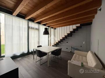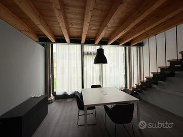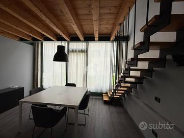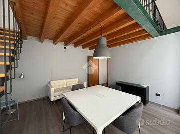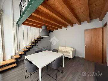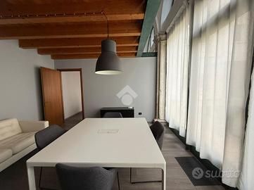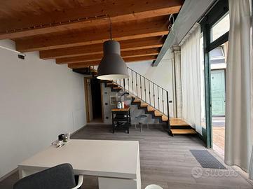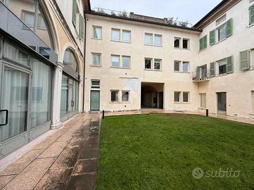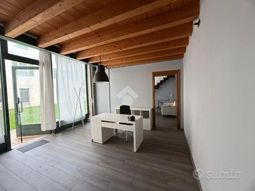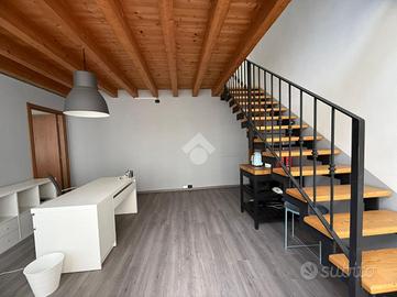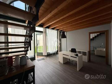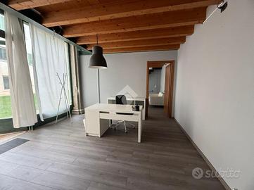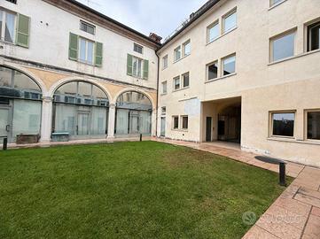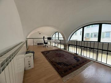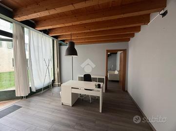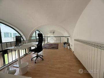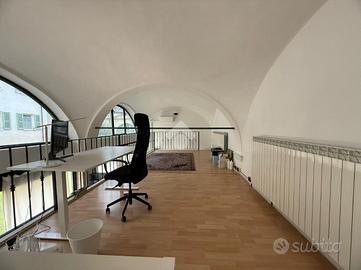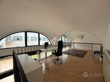 Internamente, l'ufficio si sviluppa su due livelli: piano terra (circa 40 mq): due locali separati, luminosi con finiture moderne, pavimenti in legno, travi a vista e bagno con antibagno; soppalco (circa 30 mq): accessibile tramite doppia scala, ideale come area direzionale, archivio o sala riunioni. Gli ambienti sono curati nei dettagli, caratterizzati da uno stile moderno e minimale che si integra perfettamente con il contesto storico dell'edificio. L'ampia vetrata e le altezze interne rendono lo spazio particolarmente luminoso e accogliente. Ideale per: studi professionali, architetti, consulenti, società di servizi o coworking di rappresentanza commerciale.