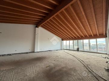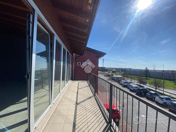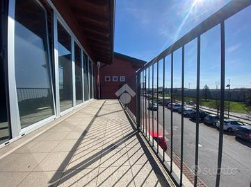 Posta al primo piano di un complesso polifunzionale che si sviluppa su due piani fuori terra e comprendente attività commerciali di massima importanza, l'unità immobiliare gode di un'ottima visibilità. Al piano terra sono presenti attività di vendita al dettaglio di grande distribuzione (alimentari, prodotti per cura della persona e la casa), negozi di telefonia mentre al piano superiore sono presenti studi professionali e uffici di rappresentanza commerciale. Il primo piano è munito di accesso carraio e un ampio parcheggio privato ad uso pubblico, oltre all'accesso attraverso le scale dal piano terra.