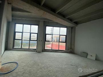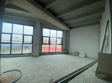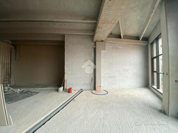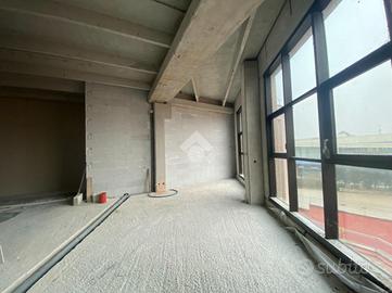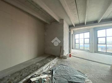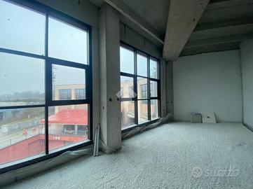 Attualmente, l'ufficio si presenta alla stato grezzo avanzato; verrà consegnato completo di pavimenti, impianti e doppi servizi igienici. L'ambiente interno risulta molto luminoso grazie a due ampie vetrate.