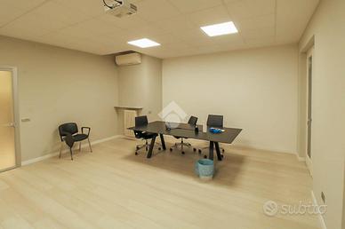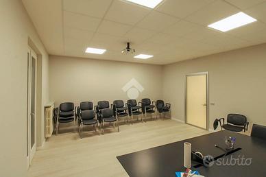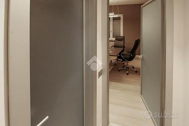 L'immobile è disposto in una soluzione suddivisa in cinque locali al primo piano, è dotata di due servizi igienici. Presenta gli impianti elettrico e di illuminazione e gli impianti di riscaldamento e di condizionamento. Sono presenti innumerevoli finestre apribili disponibili in tutti i locali, garantendo così un ottimale riciclo dell'aria. L'ufficio presenta un'uscita d'emergenza. L'epoca di costruzione della struttura risale agli anni settanta ed è stata ristrutturata recentemente nell'anno 2020, L'ambiente è piacevole e moderno e viene affittato già arredato. Sono presenti svariati parcheggi non esclusivi.