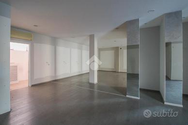 La soluzione proposta in vendita ha una superficie che misura nella sua totalità 470 metri quadrati. Internamente l'immobile è caratterizzato da due ampi ambienti, resi molto luminosi grazie alla presenza di quattro vetrine con affaccio su strada. L'ufficio è dotato degli impianti elettrico, di illuminazione, di allarme, di riscaldamento e di condizionamento. A completare la soluzione è la presenza di due servizi igienici privati e di circa 190 metri quadrati di magazzino, posto al piano interrato e accessibile tramite scale.