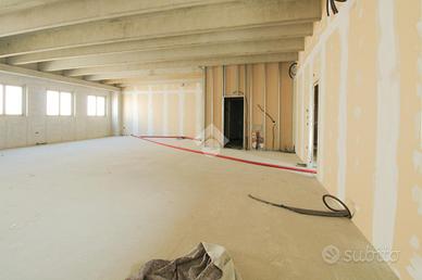 La costruzione che ospita l'unità immobiliare è a destinazione commerciale e direzionale, è stata edificata con struttura prefabbricata, con negozi al pianterreno e laboratori ed uffici al primo ed ultimo livello del complesso che presenta un accesso condominiale dove si trovano l'ascensore e l'ampia scala che collegano al livello. Lo spazio proposto in vendita è un grande open space di circa 765 metri quadrati che affaccia sul fronte della strada, attualmente rifinito allo stato rustico con realizzati i vani che ospiteranno i servizi igienici. La soluzione può essere adibita a svariate tipologie di attività professionali ed è facilmente allestibile per attività artigianali, laboratori medici e palestre in genere. Il complesso dispone di innumerevoli posti auto.