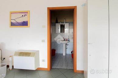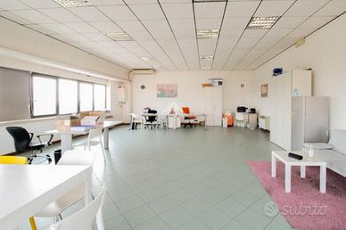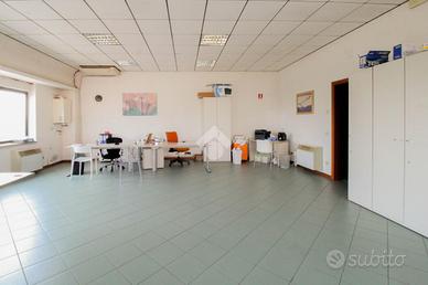La soluzione proposta ha una superficie complessiva di 85mq situata al primo piano di un edificio strutturato su due livelli. Internamente l'immobile si presenta con un ampio open space, reso molto luminoso grazie alle numerose vetrine che favoriscono l'illuminazione naturale. L'immobile è dotato di impianti elettrico, di illuminazione, di riscaldamento e raffreddamento. Completa la soluzione un servizio igienico privato.