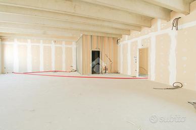 La costruzione che ospita l'unità che viene proposta in locazione, è a destinazione commerciale e direzionale, è stata edificata con struttura prefabbricata con negozi al pianterreno e laboratori ed uffici al primo ed ultimo livello del complesso che presenta un accesso condominiale dove si trovano l'ascensore e l'ampia scala che collegano al piano. Lo spazio proposto è un grande open space di circa 500 metri quadrati che affaccia sul fronte della strada, attualmente rifinito allo stato rustico con realizzati i vani che ospiteranno i servizi igienici. La soluzione può essere allestita a piacimento e adibita a svariate tipologie di attività professionali ed è facilmente convertibile per attività artigianali, laboratori medici e palestre in genere. Il complesso dispone di innumerevoli posti auto.
