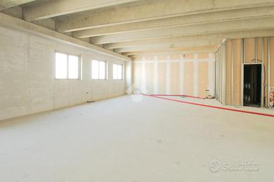 La costruzione che ospita l'unità immobiliare è a destinazione commerciale e direzionale, è stata edificata con struttura prefabbricata, con negozi al pianterreno e laboratori ed uffici al primo ed ultimo livello del complesso che presenta un accesso condominiale dove si trovano l'ascensore e l'ampia scala che collegano al livello. Lo spazio proposto in vendita è un grande open space di circa 240 metri quadrati che affaccia sul fronte della strada, attualmente rifinito allo stato rustico con realizzati i vani che ospiteranno i servizi igienici. La soluzione può essere adibita a svariate tipologie di attività professionali ed è facilmente allestibile per attività artigianali, laboratori medici e palestre in genere. Il complesso dispone di innumerevoli posti auto.
