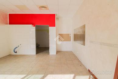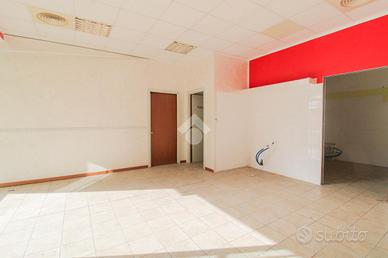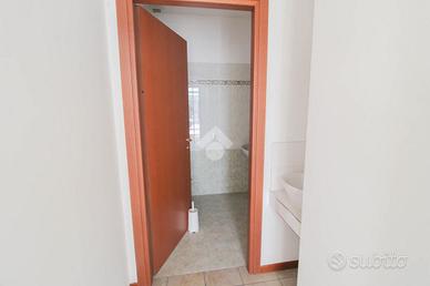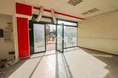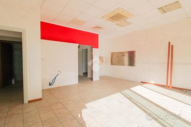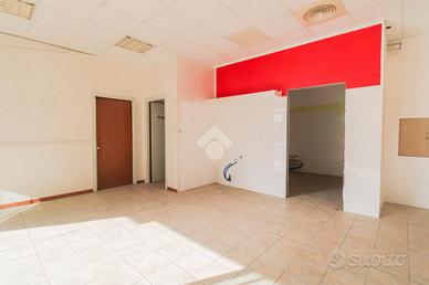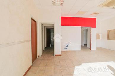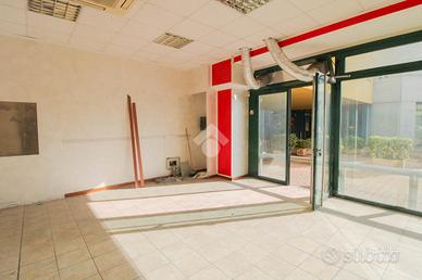 L'ufficio ha una superficie di circa 60 metri quadrati, suddivisa in due ambienti separati da parete in cartongesso. La vetrina con ampia finestra garantisce ottima luminosità naturale. L'immobile è già completo di impianto di riscaldamento, condizionamento, impianto elettrico, illuminazione e bagno privato con antibagno. È presente anche una canna fumaria. L'altezza interna del locale è di 2,75 metri.